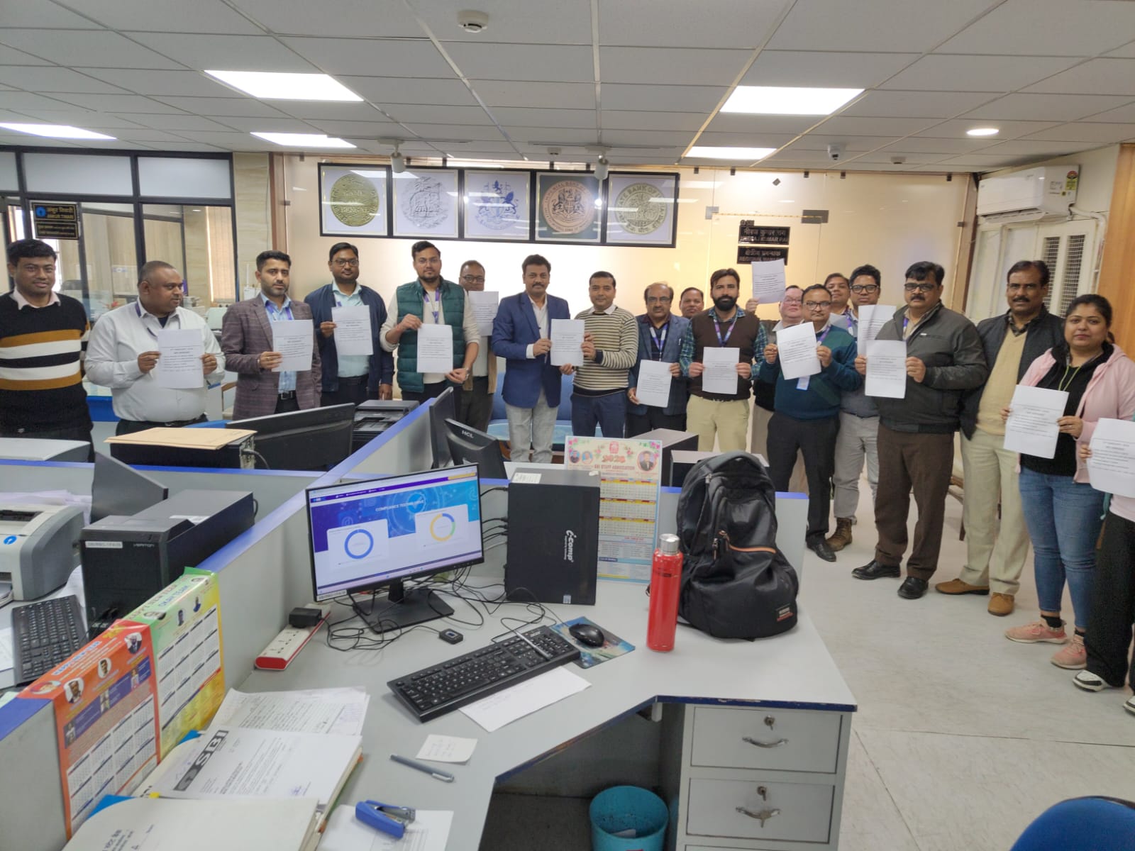 12 फरवरी की हड़ताल को लेकर बैंक कर्मचारियों का प्रदर्शन, बैज लगाकर जताया विरोध