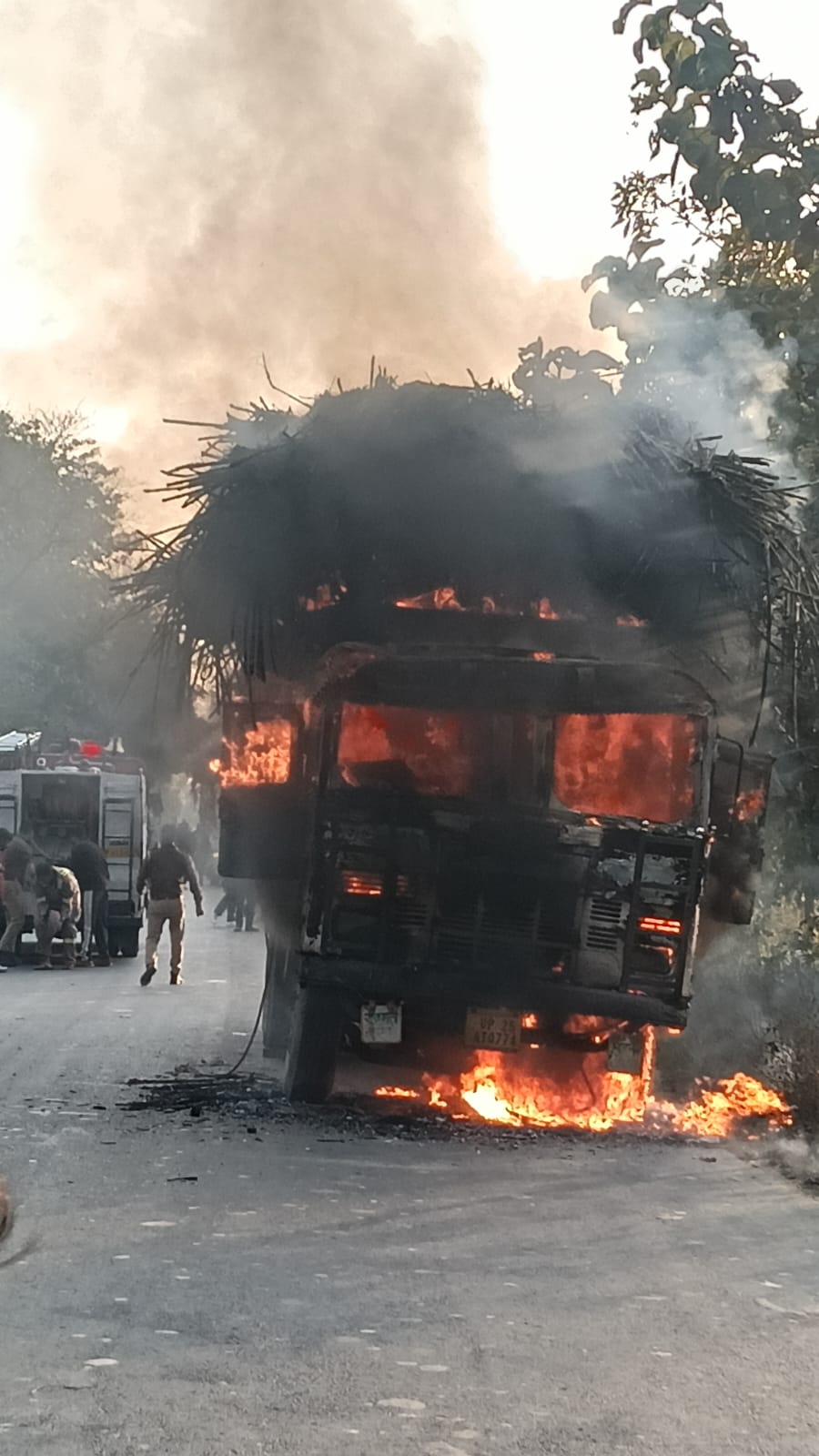 चलते ट्रक में भड़की आग, 20 मिनट में बना आग का गोला, चालक ने कूदकर बचाई जान