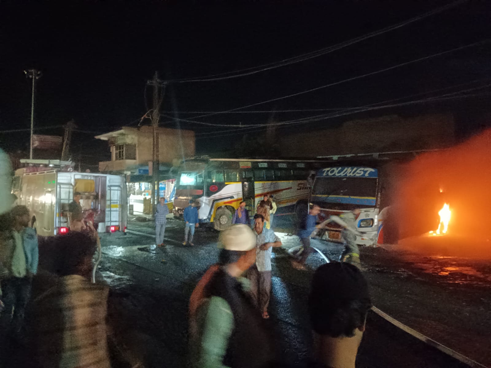 बहेड़ी में आधी रात हाईटेंशन लाइन टूटकर बस पर गिरी, आग से बस खाक, हेल्पर गंभीर रूप से झुलसा