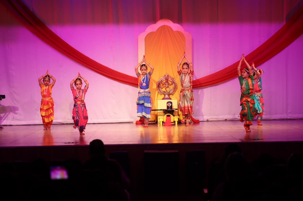कार्यक्रम की शुरुआत भगवान नटराज की वंदना “नागेंद्र हराय” से हुई। आद्या ग्रोवर, आद्या गुप्ता, मेहर, वान्या, अंबिका, अनंशी, अनिका, चिरन्य, पर्या, राध्या, बंदगी, सान्वी, भाव्या, संस्कृति, सैव्या, अक्षिता और अनुरति ने अपनी सधी हुई नृत्य मुद्राओं और भाव-भंगिमाओं से भगवान शिव की आराधना की।