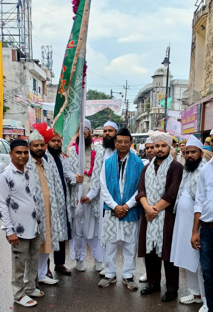 बरेली। 1500वें ईद मिलादुन्नबी के मौके पर बरेली हज सेवा समिति के संस्थापक एवं समाजसेवी पम्मी ख़ाँ वारसी ने सिविल लाइन स्थित नॉवल्टी चौराहे पर फूलों से परचम-ए-रसूल और जुलूस-ए-मोहम्मदी का इस्तकबाल किया। इस दौरान दरगाह आला हजरत के प्रमुख हज़रत सुब्हान रज़ा ख़ाँ सुब्हानी मियां भी मौजूद रहे।